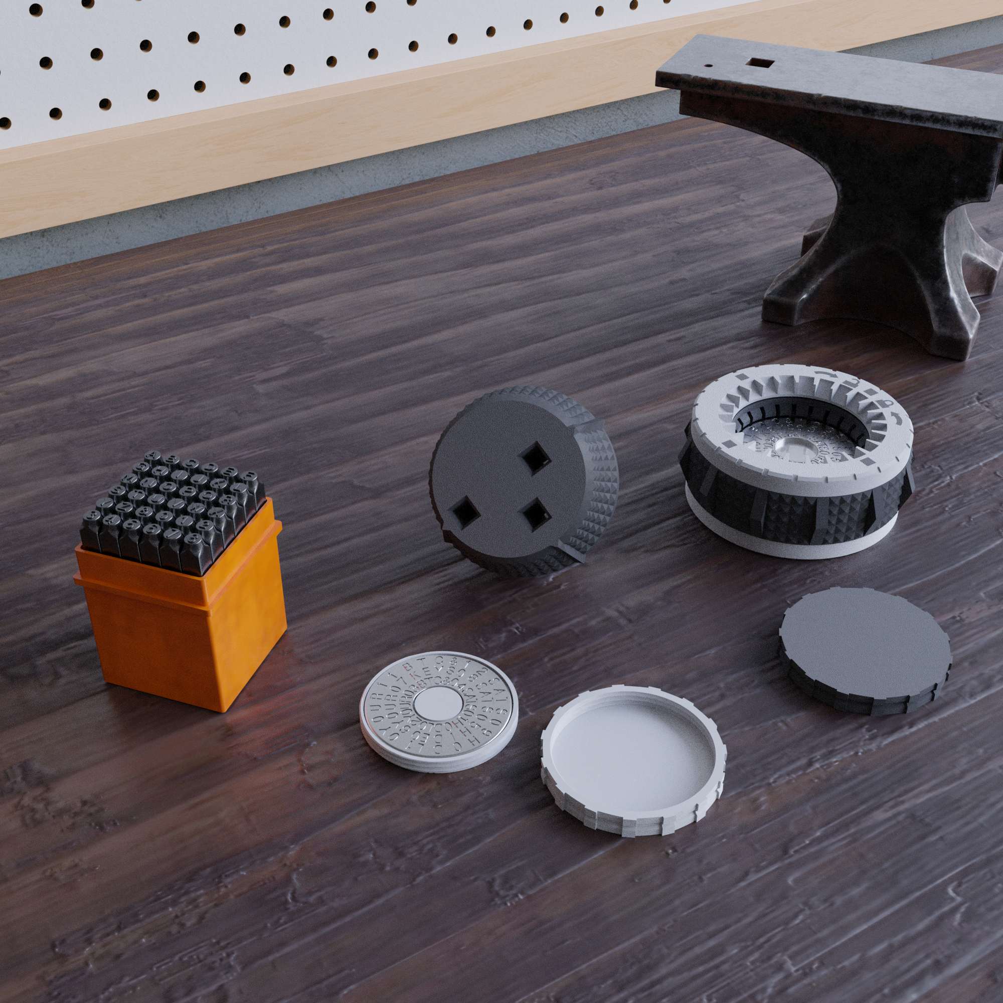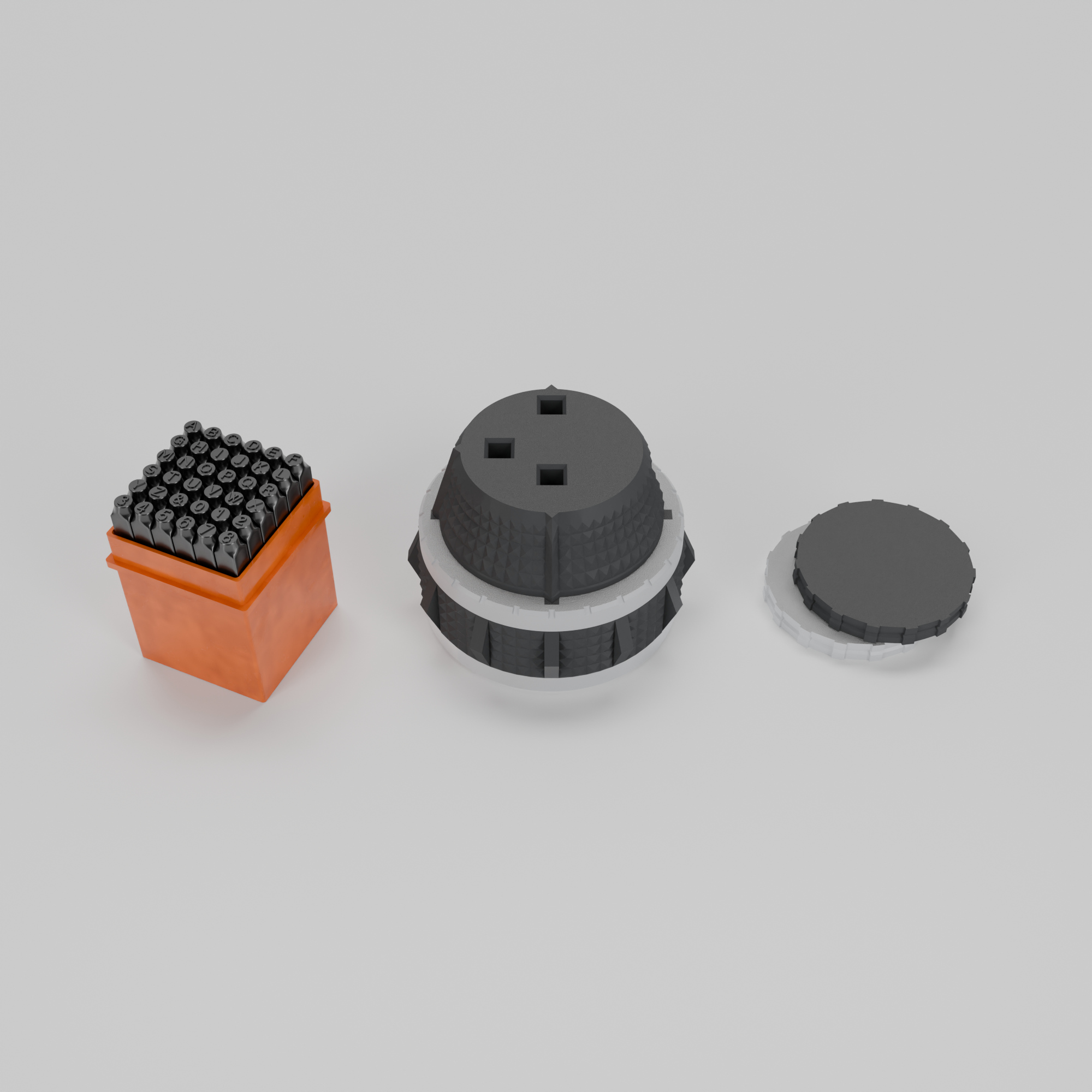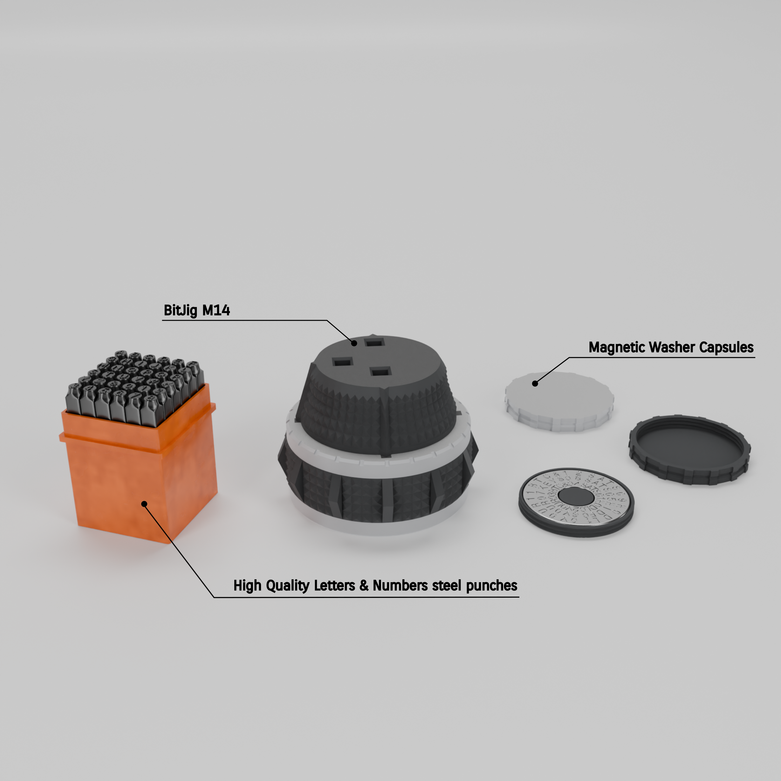 Stempeln Sie einfach Ihren Satz auf die Unterlegscheibe, bewahren Sie ihn in der Kapsel auf und bewahren Sie ihn an einem sicheren Ort auf. Die Unterlegscheiben-Kapsel verfügt über einen Magneten, mit dem Sie die Kapsel an jeder metallischen Oberfläche befestigen können. Besuchen Sie unseren Shop für zusätzliche Kapseln und Unterlegscheiben, um neue Seed-Sätze zu erstellen.