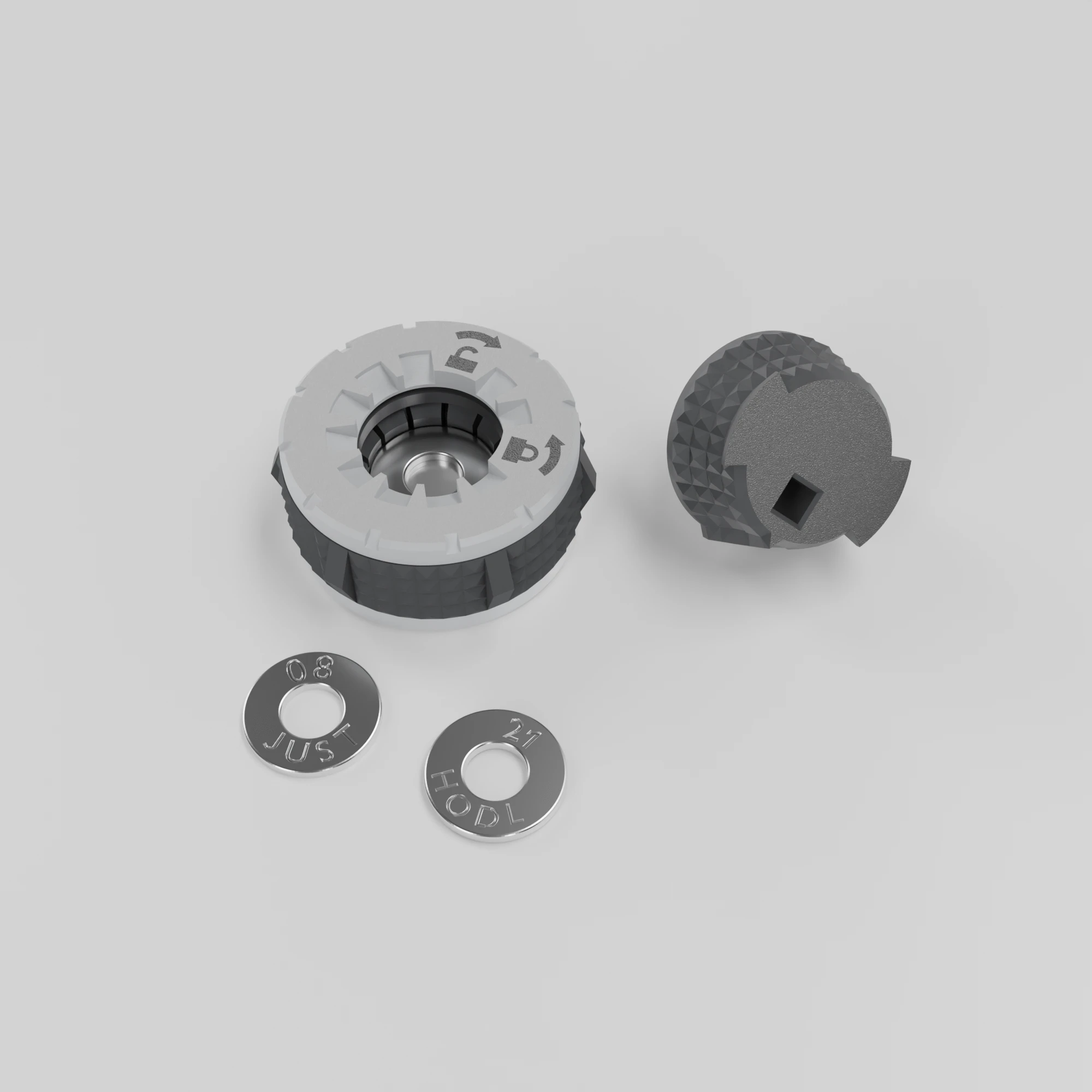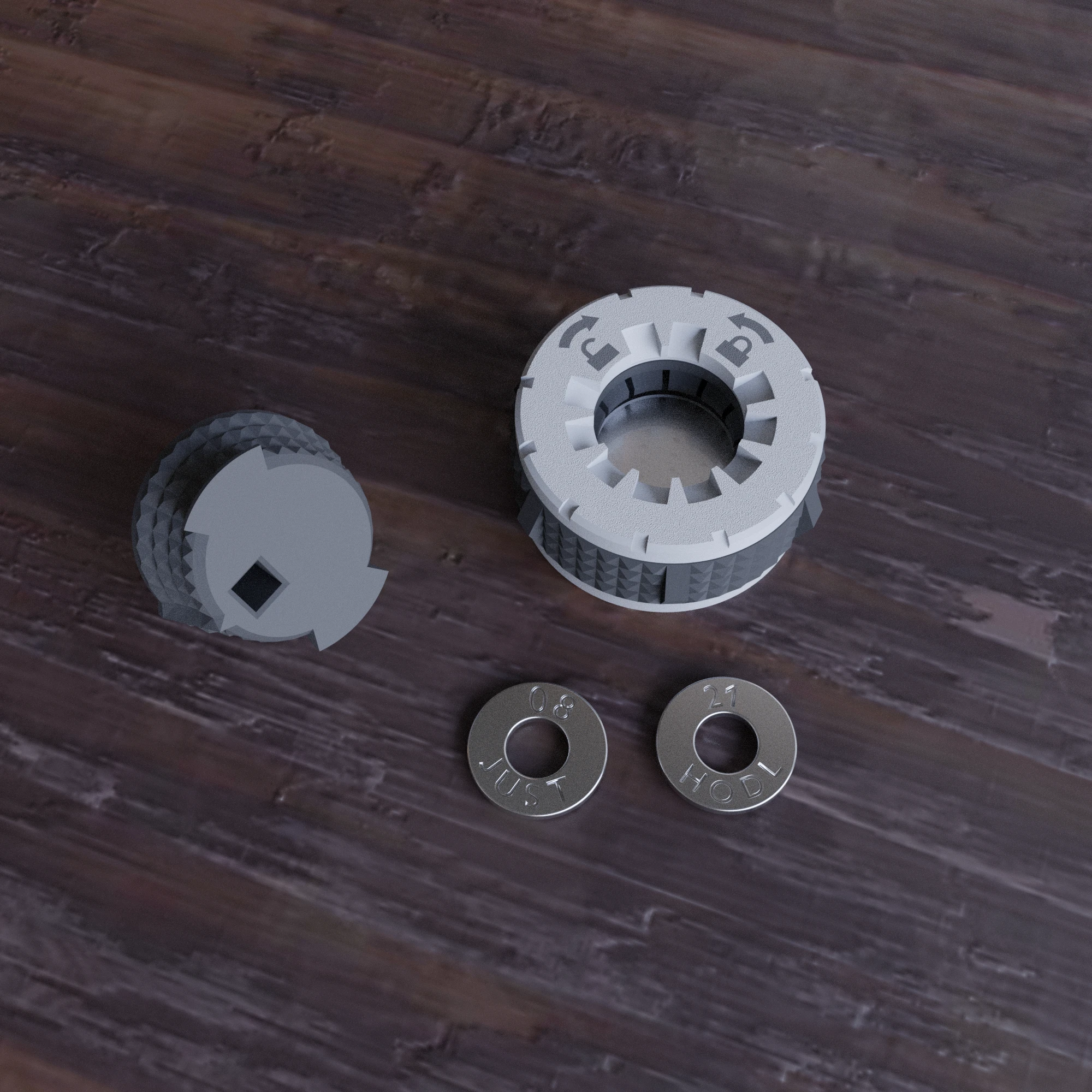 The BitJig M8 is a tool used to imprint a seed phrase (your private keys or mnemonic phrase) onto metal washers, for Bitcoin or other cryptocurrencies. This tool allows you to easily create and store your private keys in a secure and durable manner. The BitJig M8 is operated manually with a hammer (or a mallet preferably), the tolerances are perfect for a set of M8-24 washers.