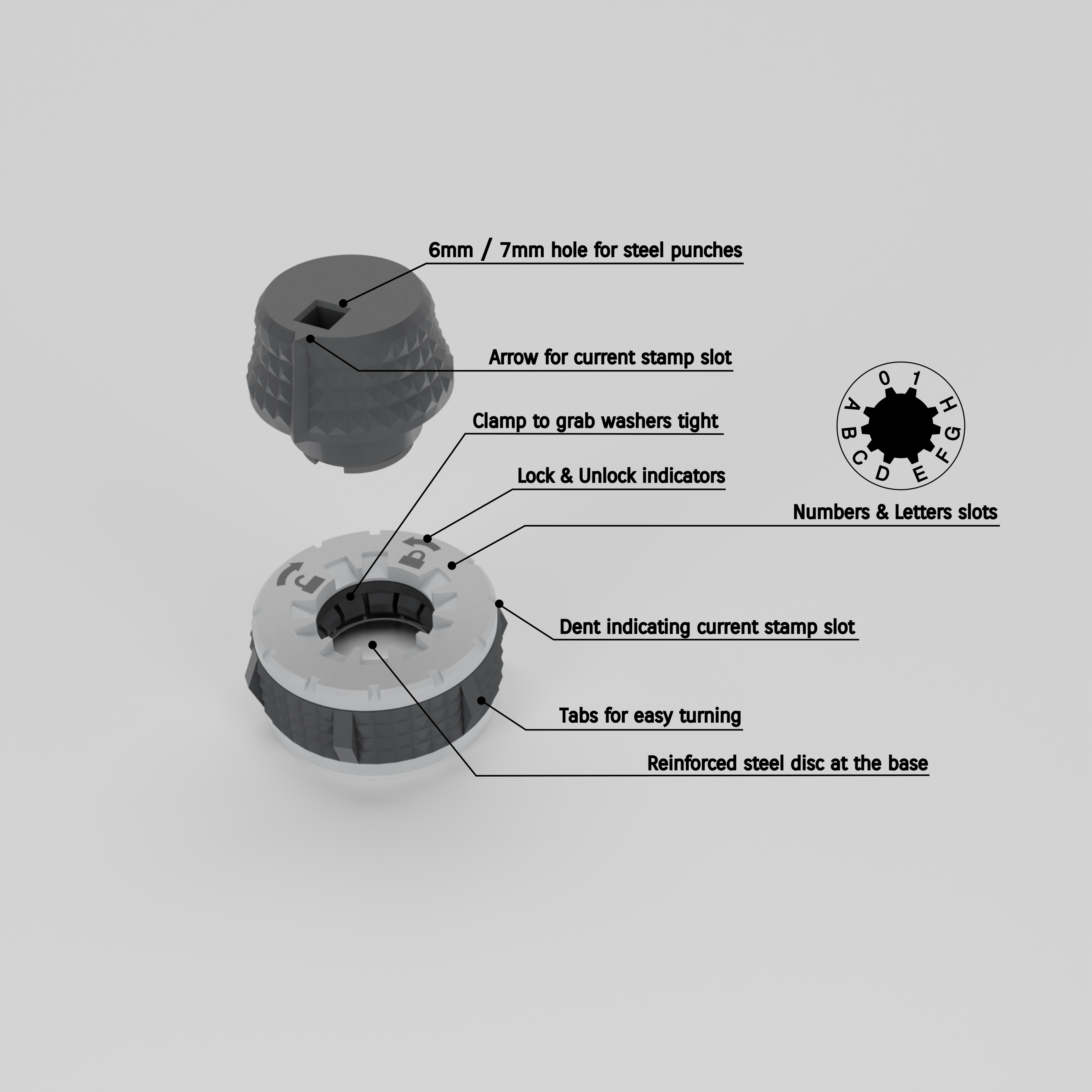 This stamping jig is designed with a mechanism that secures the washer in place during the stamping process, making it more efficient and accurate than other solutions. The support platform for the washer has a diameter of 6cm, providing a stable and sturdy base to hold onto while stamping, eliminating the risk of injury from accidentally hitting your fingers or needing to apply excessive force. The BitJig’s design also allows for a more precise imprint of the chosen phrase or seed code, ensuring that the private keys stored on the washers are clearly legible and easy to read.
